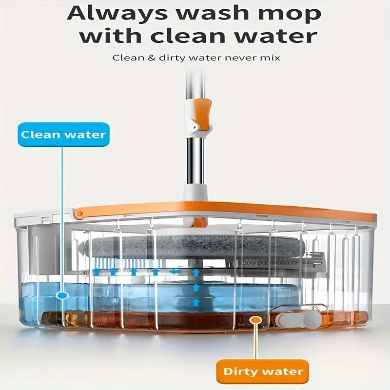 1 Set, Sewage Separation Hands-free Wash Mop And Bucket Set, With 2 Mop Cloth, Household Rotating Floor Mop, Lazy Mop, Dust Removal Mop, Dry And Wet Use, Perfect For Home, Kitchen, Bathroom Floor, Cle