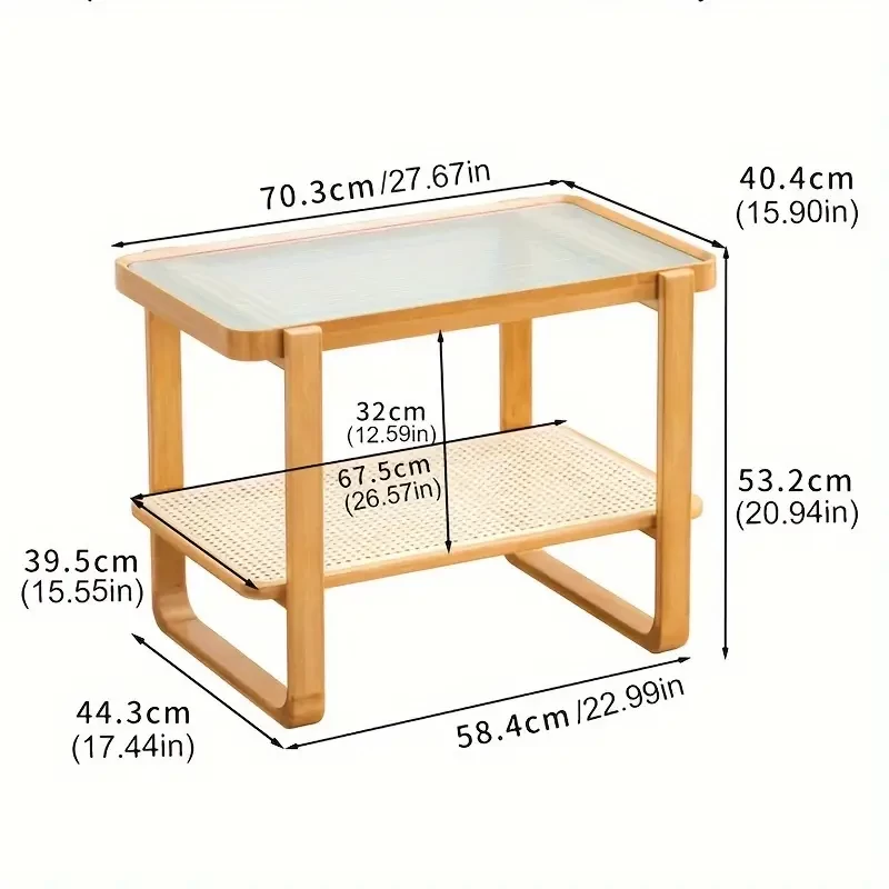 1pc Sea Shipping. Sofa Side Table, Minimalist Living Room Mini Balcony Small Coffee Table, Log Color Glass Bedside Table Rattan Braided Corner Table