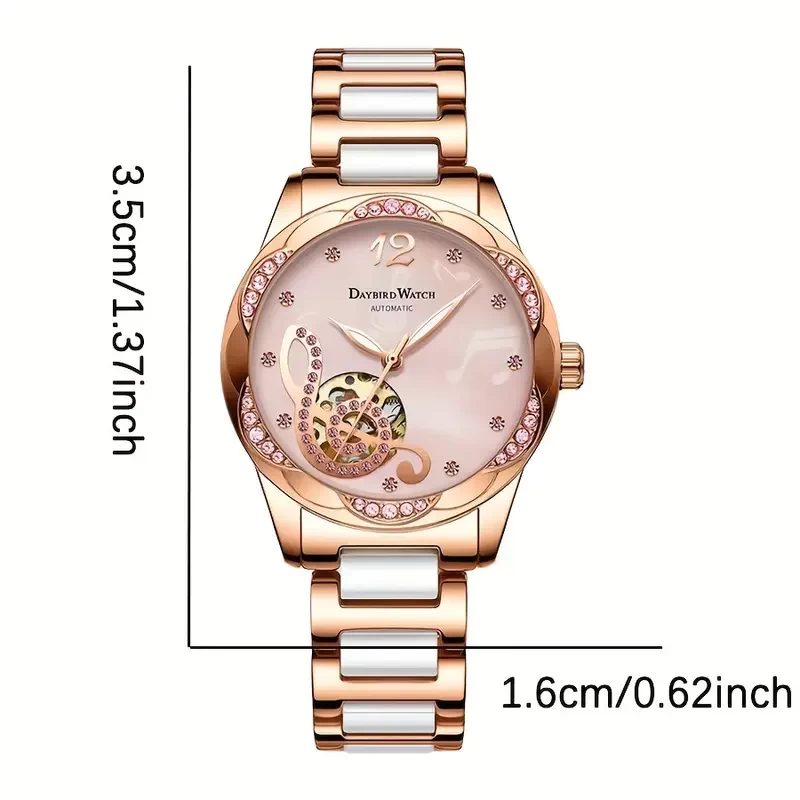 1pc White Women's Alloy Elegant Hollow Mechanical Watch