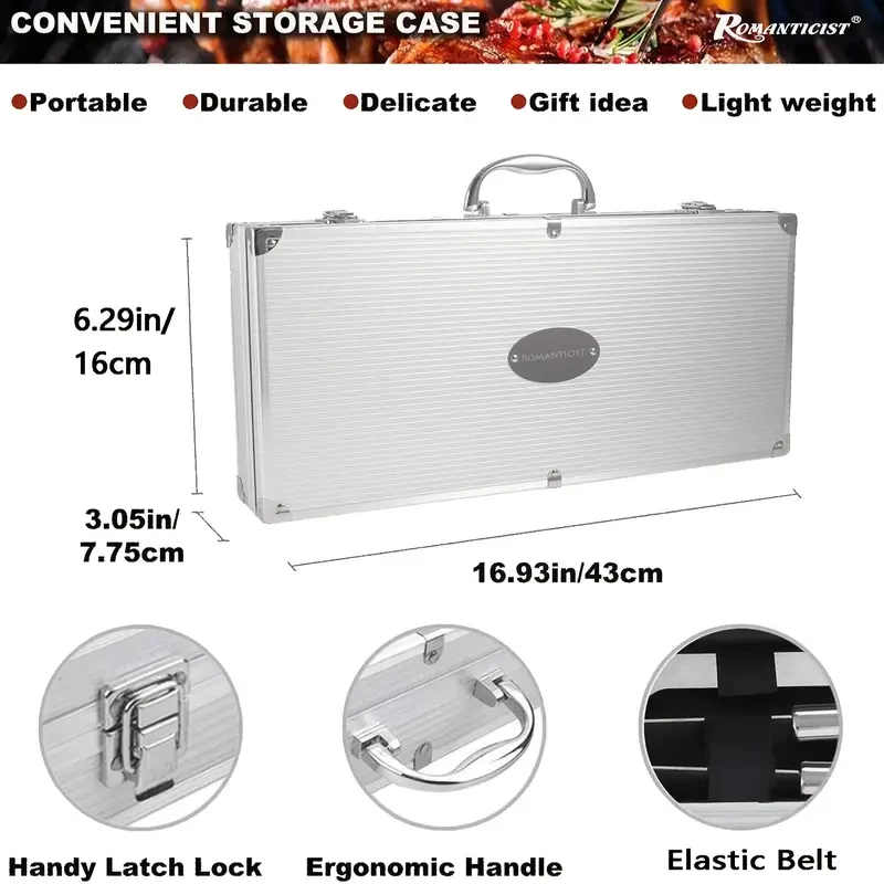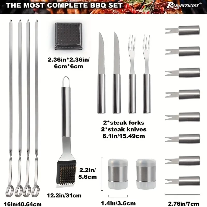 28pcs Heavy Duty Stainless Steel BBQ Accessories Set with Thermometer - Perfect Gift for Birthday, Wedding, and Outdoor Cooking - Includes Grill Set, Thermometer, and Cookware Accessories for Camping,