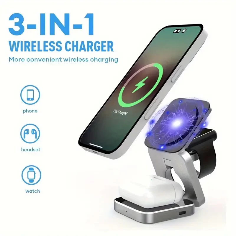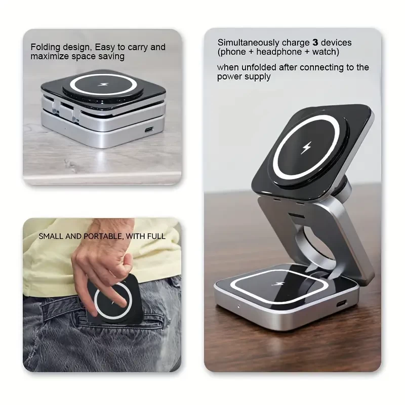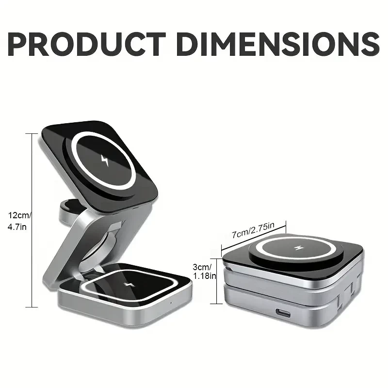 3-in-1 Foldable Magnetic Wireless Charger, Type-C Input, Maximum Output For Phone 15W, Watch 3W, And Earphones 5W