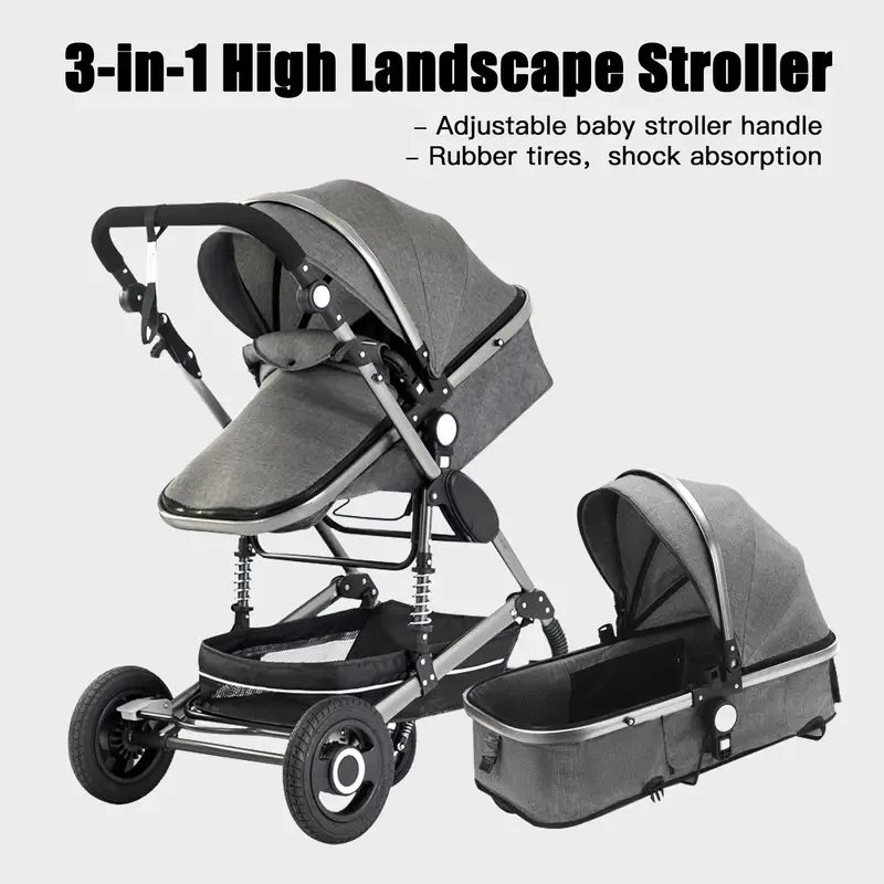 3-in-1 High Landscape Baby Stroller, Travel System For Toddlers 1-3 Years Old, Portable Folding Baby Stroller For Kids With One-Click Car Collection, Gift For Boys And Girls
