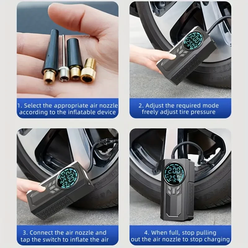 4-IN-1 Car Emergency Start Power Supply Air Pump Integrated With Electric Treasure Portable Battery Ignition Starter Lighting Car Air Pump Tire Car Inflator