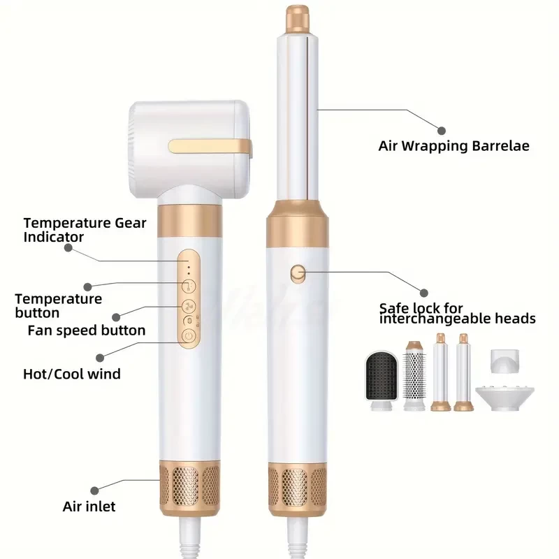 7-in-1 Hot Air Brush, Detachable Hair Dryer Brush, Powerful Hair Blow Dryer With Diffuser, Air Curler Wand, Hair Dryer Brush Set