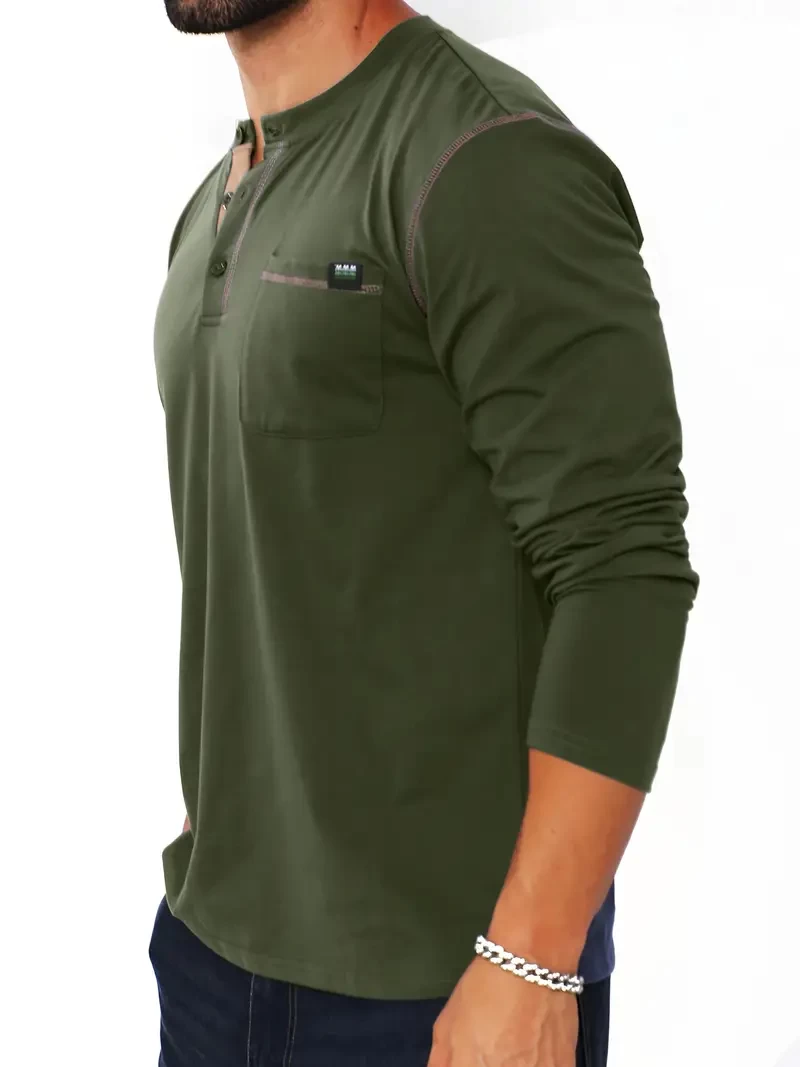 Autumn and winter new color contrast long sleeve T-shirt men's fashion color contrast line decoration cardigan Henry shirt fashion sweatshirt