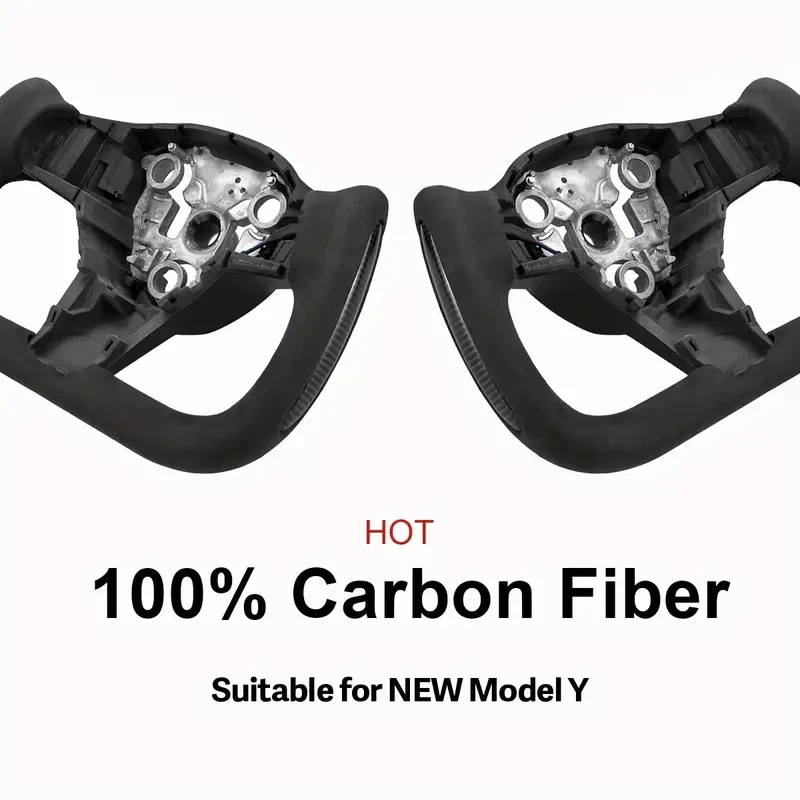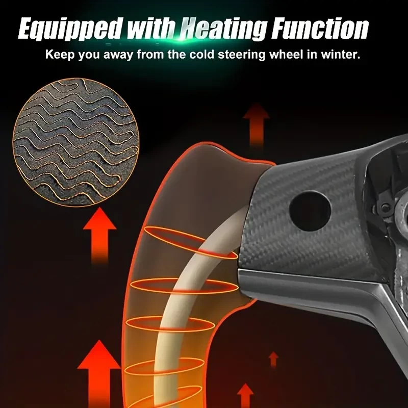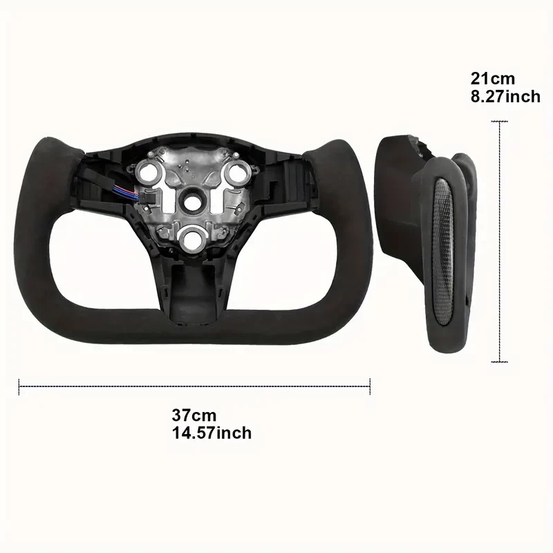 Black Suede Yoke Steering Wheel For Tesla For Model Y With Heating - Auto Parts - High-quality