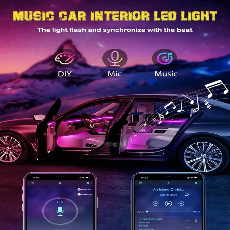Car Interior LED Strip Lights,RGB 6 In 1 With 315 Inches Fiber Optic,Ambient Lighting Kits,16 Million Colors Car Neon Lights,Sync To Music APP Control