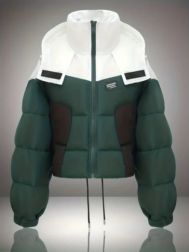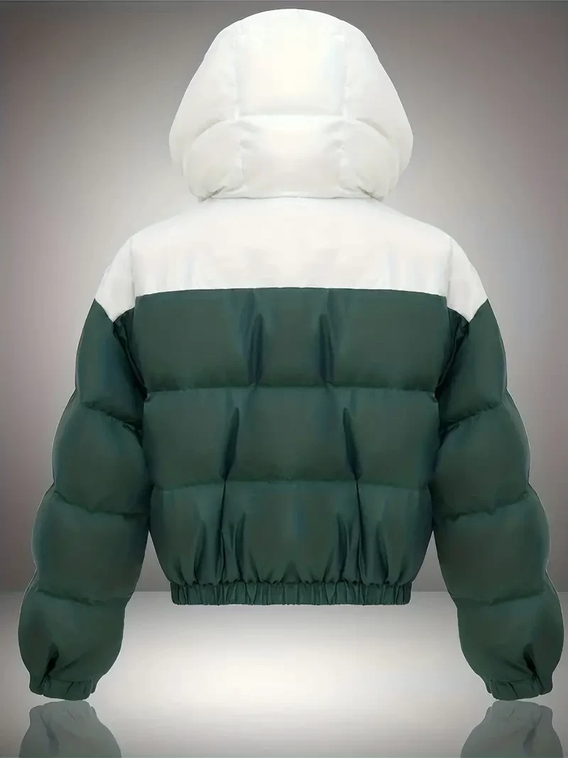 Color Block Zipper Hooded Coat, Versatile Drawstring Long Sleeve Thermal Winter Outwear, Women's Clothing