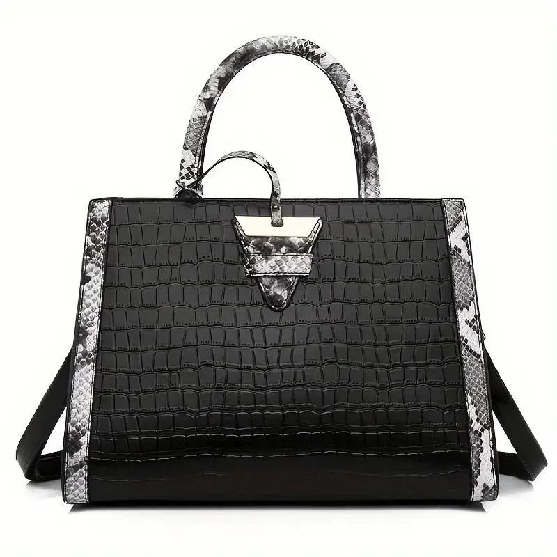 Elegant Snake Skin & Crocodile Pattern Tote Bag, Classic Women's Handbag For Work