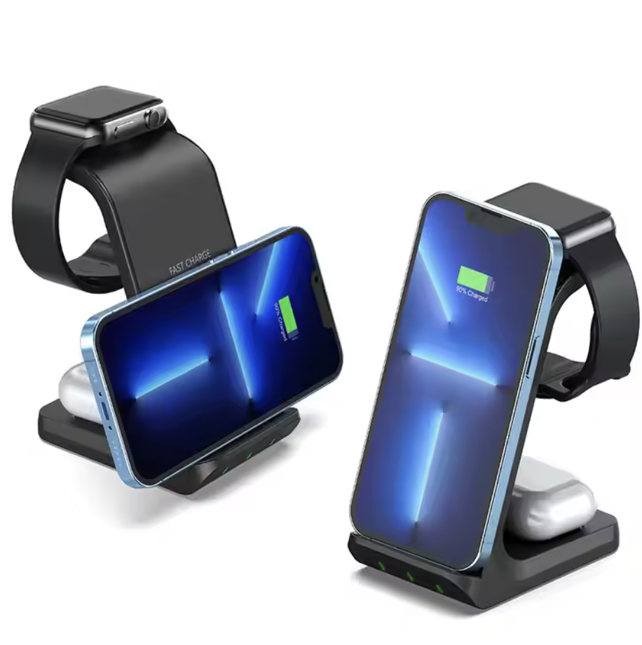 • Fast Charging Capability: This 3-in-1 wireless charging stand supports fast charging with a maximum output of 15W, making it ideal for users who need to charge their devices quickly, especially for those who frequently use their smartphones, earphones, and smartwatches.