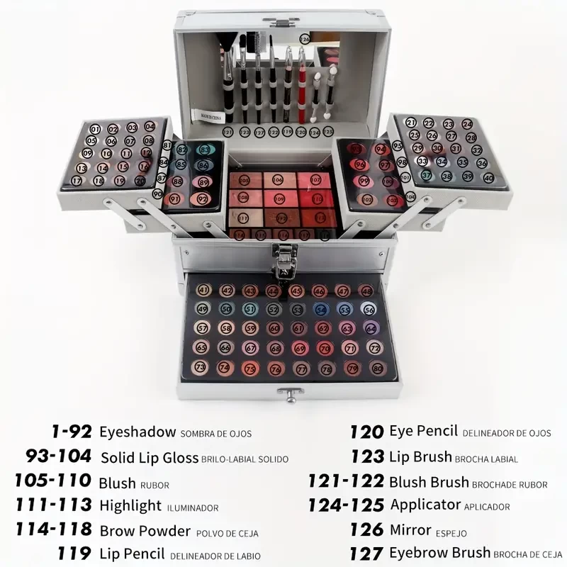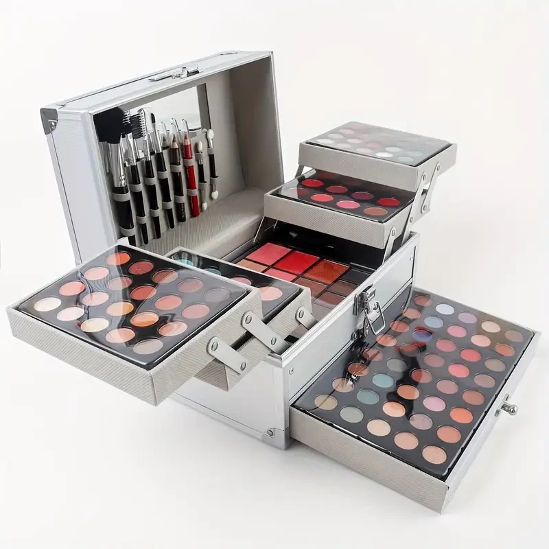 Full Range All-in-One Makeup Kit with Brush Tools - Includes Eyeshadow, Highlight, Blush, Lipstick, and Eyeliner - Perfect for On-the-Go Beauty