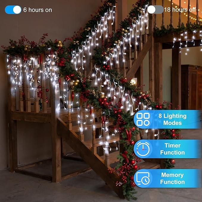HRANBOTY 132 FT LED Christmas Lights with 280 Drops, 980 LED Indoor Outdoor Christmas Decorations, 8 Lighting Mode Waterproof Fairy Lights with Timer for Xmas Holiday Wedding Yard Party Cool White