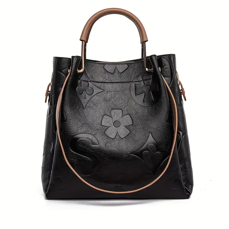 Large Capacity Women's Versatile Bucket Bag, Classic Vintage Flower Embossed Handbag, Fashion Office Bag