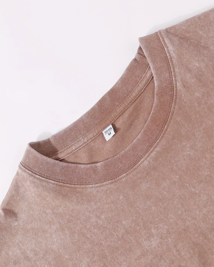 Lion dance pattern printed men's fashion off shoulder sleeve High quality 230g heavy weight 100% cotton Washed short sleeve to do old pure cotton wash technology street feng shui wash T-shirt