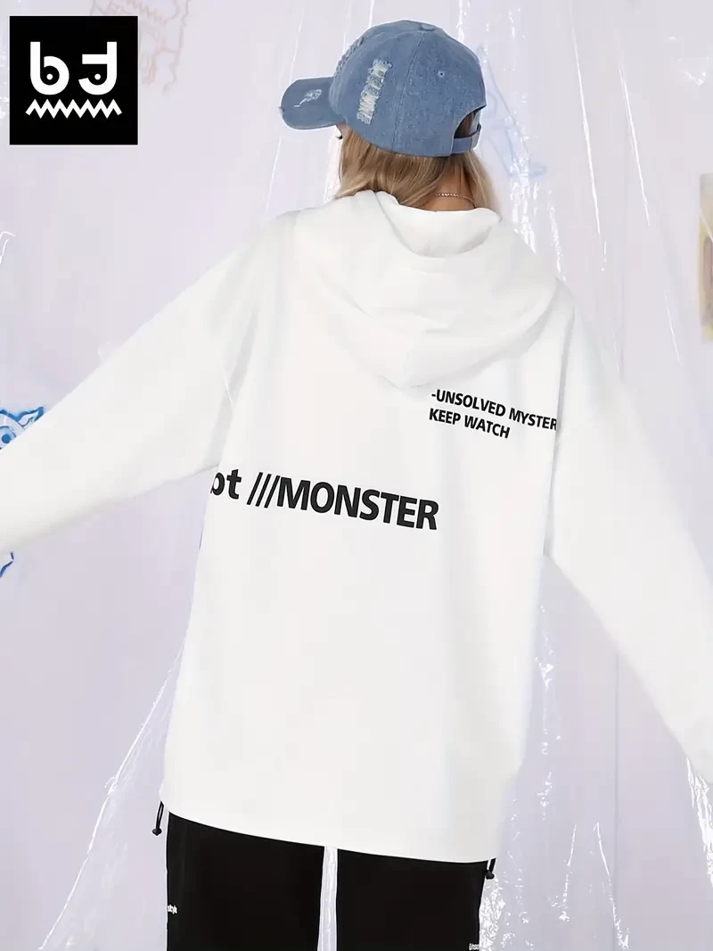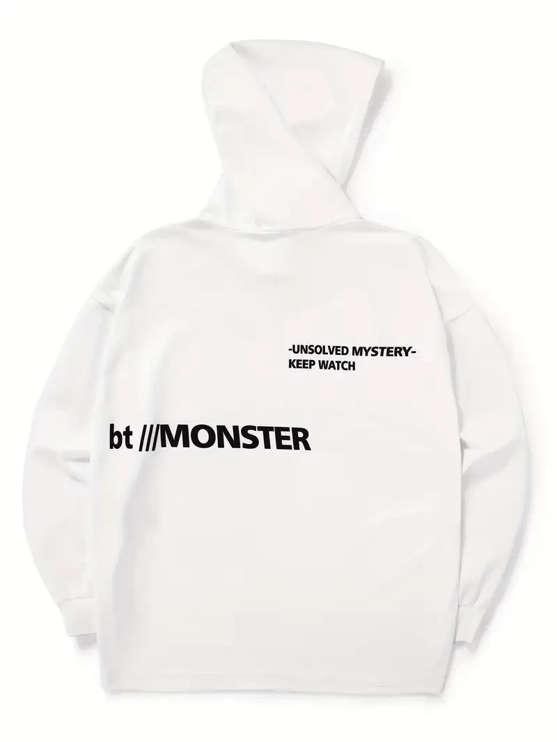 Men's Stylish Loose Monster Pattern Hoodie With Pockets, Casual Slightly Stretch Breathable Long Sleeve Hooded Sweatshirt For City Walk Street Hanging Outdoor Activities