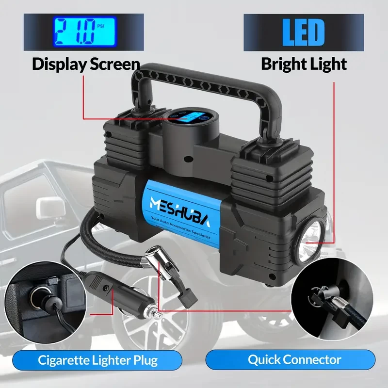 MESHUBA Tire Inflator Portable Air Compressor, 150PSI Air Pump For Car Tires With Digital Pressure Gauge For Car Bike Motor Ball, Blue