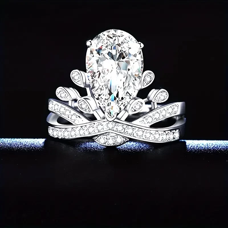 Moissanite Engagement Crown Ring 2ct Engagement Wedding Ring Promise Bridal Band For Women Temperament Jewelry Gift