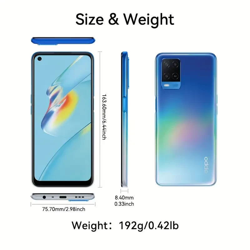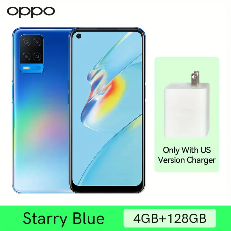 OPPO A54 4G Smartphone 6.51" HD+ Screen 16MP Selfe Camera 5000mAh Battery 18W Fast Charge 3D Curved Body Side Fingerprint Unlock Mobile Phone 4GB/128GB Support 256GB Extra Storage Global Version With