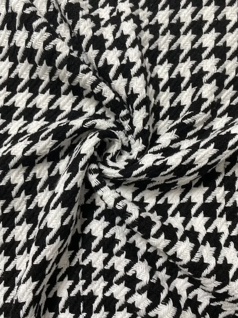 Plus Size Casual Blazer, Women's Plus Houndstooth Print Long Sleeve Lapel Collar Button Blazer