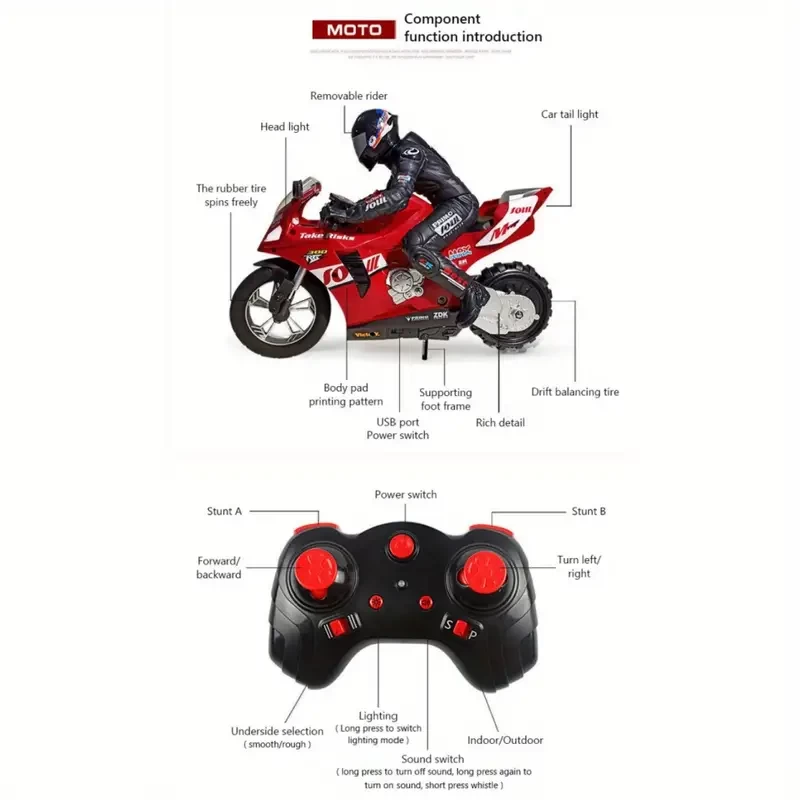 RC Motorcycle Balance Stunt RC Car,Drift Charging Racing Toy, Christmas Halloween Thanksgiving Day Gift