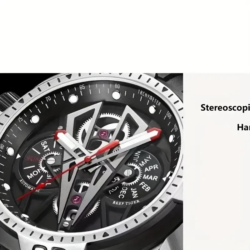 REEF TIGER Watch With Steel Band, Large Dial Mechanical Fully Automatic Waterproof Wristwatch