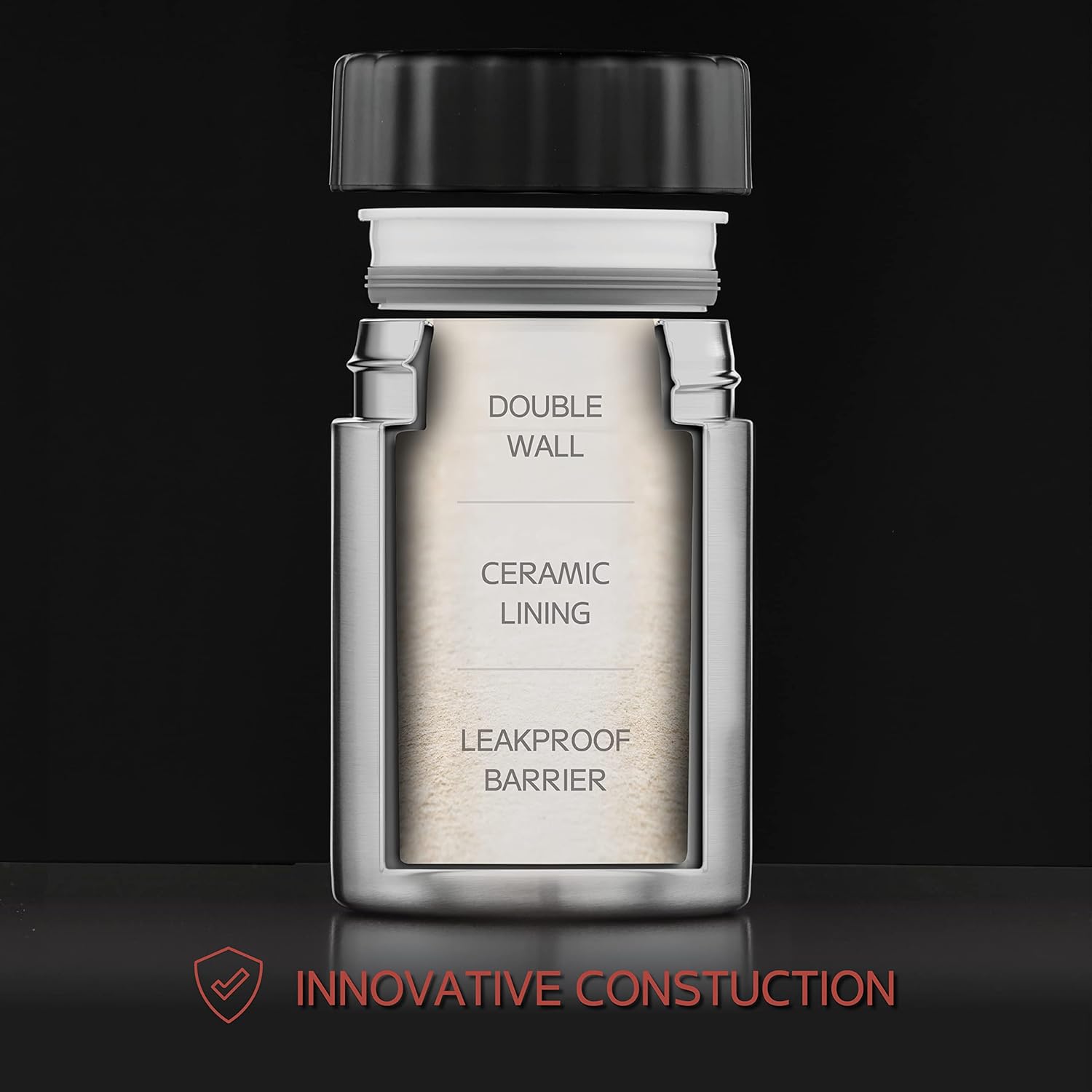 Stainless Steel Insulated Food Jar,13 oz Food Thermos for Hot Soup & Cold Fruit, Ceramic Interior Food Container, Silicone spoon Eco-Friendly