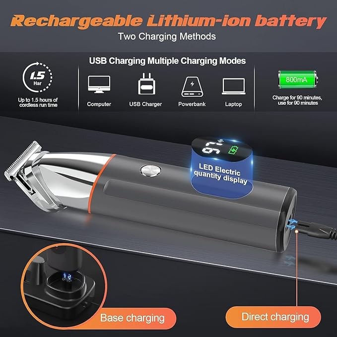 Telfun Beard Trimmer for Men, Electric Razor IPX7 Waterproof Beard Trimming Kit with Mustache Nose Ear Body Facial, Shaving Kit for Cordless Hair Trimmer, Hair Clippers, Gifts for Men