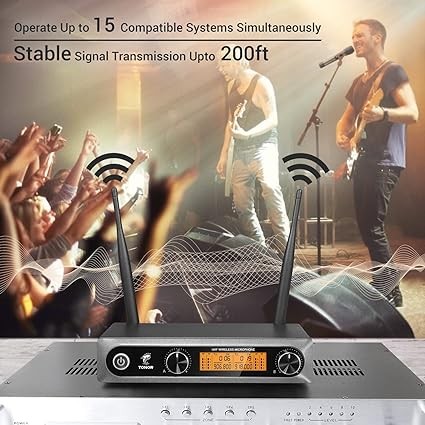 TONOR Wireless Microphone,Metal Dual Professional UHF Cordless Dynamic Mic Handheld Microphone System for Home Karaoke, Meeting, Party, Church, DJ, Wedding, Home KTV Set, 200ft(TW-820)