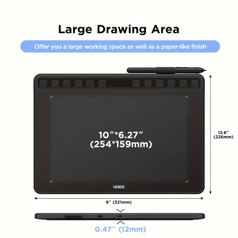 UGEE S1060W Wireless Graphics Tablet 10X6.27 Inches Digital Drawing Pad With 12 Shortcut Keys, 8192 Passive Stylus Graphic Pen Tablet Work On Android, OS, Chrome OS,Linux