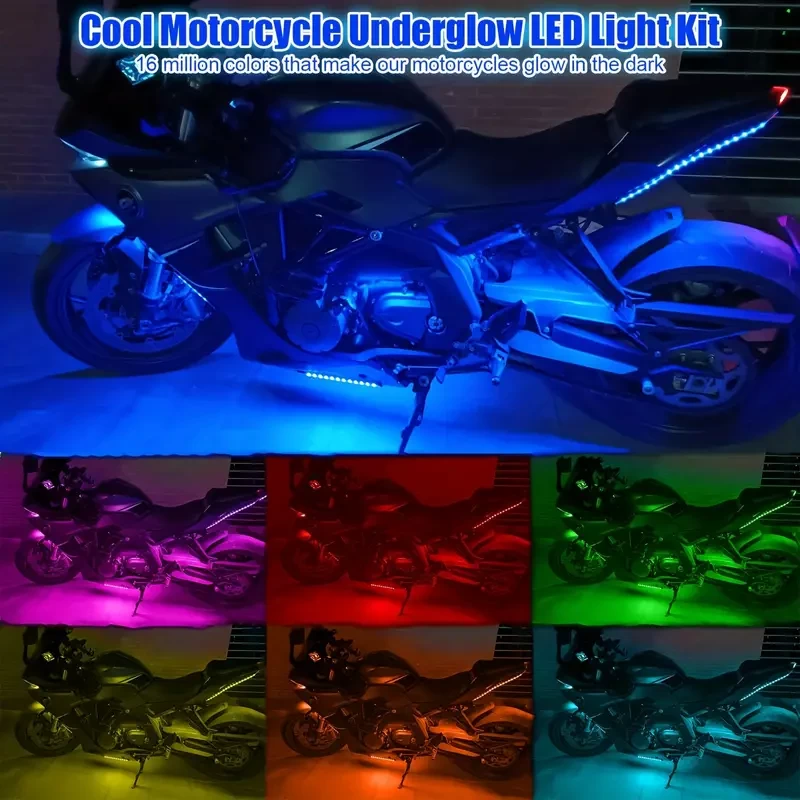 Upgrade Your Motorcycle with a 6-Piece RGB LED Light Kit - Multi-Color, Red Brake Light & Waterproof Silicone Strip!