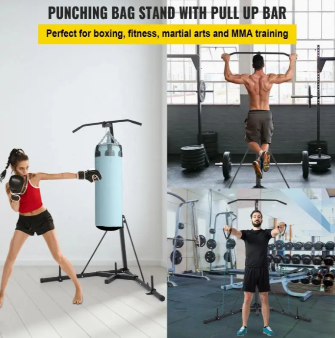VEVOR 2 in 1 Heavy duty sandbag holder, height adjustable, folding boxing sandbag holder, steel sandbag holder, independent support, weight bearing up to 132 pounds, suitable for home and gym workouts