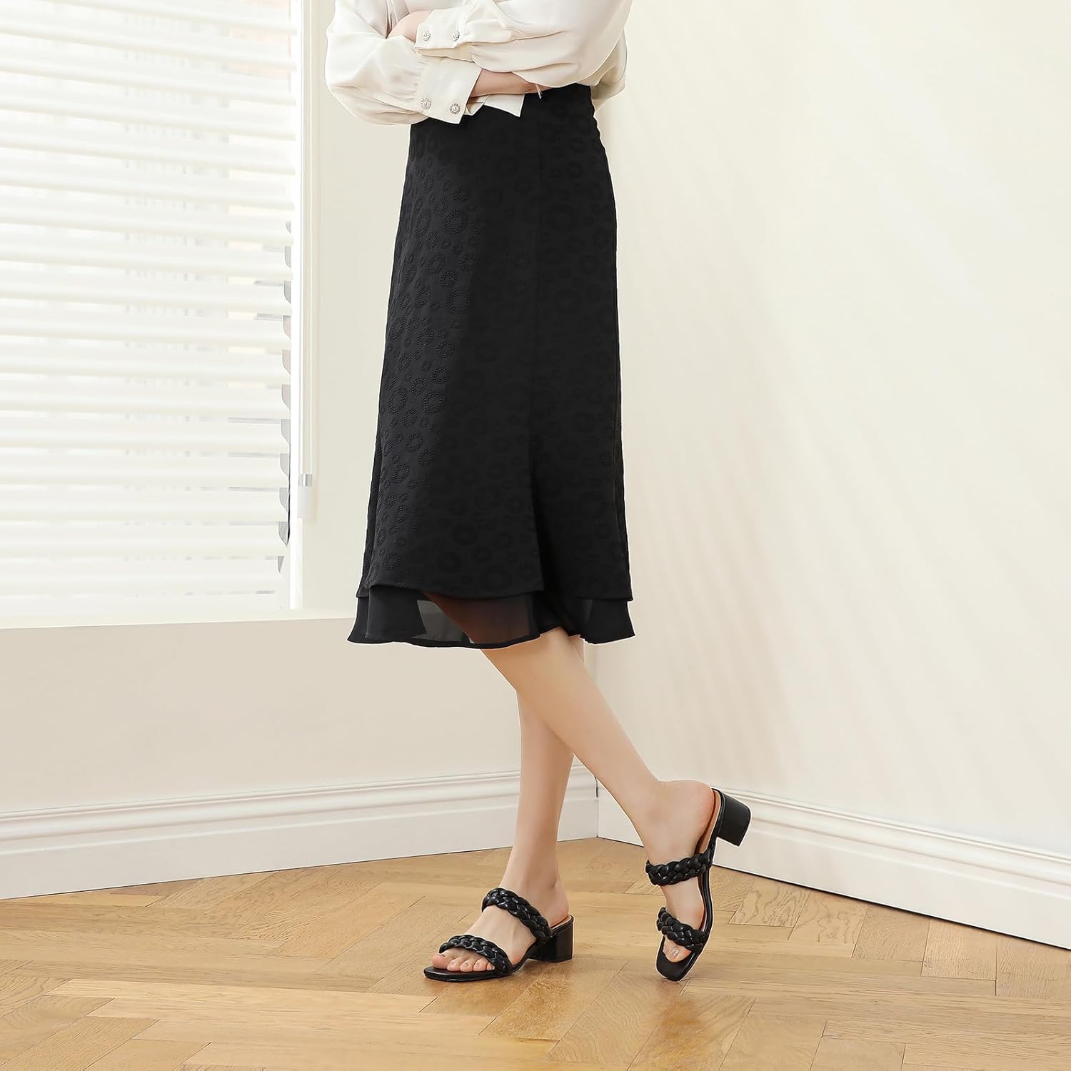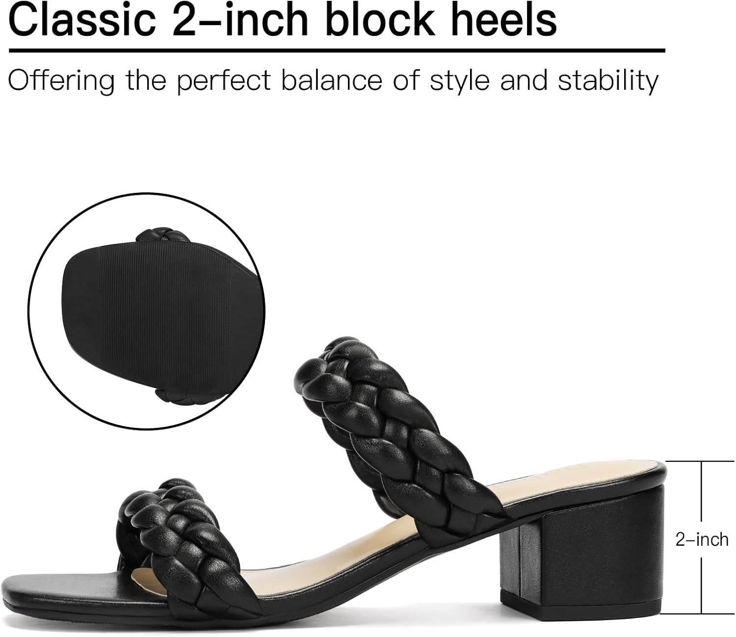 Wide Width Chunky Heels for Women Braided Dressy Sandals Square Open Toe Summer Shoes