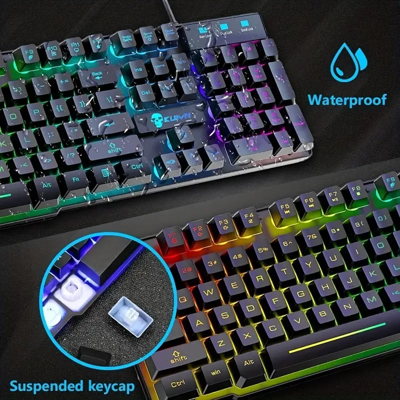 Wired Gaming Keyboard Mouse Headphone and Speaker Combo with Multi RGB Backlight Ergonomic 104 Key Adjustable Mic 2400DPI Mice Large Mousepad Waterproof for PC Mac Gamer Office Typist