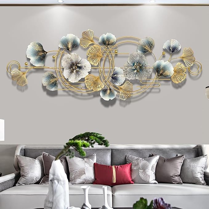 ZONEWD Metal Wall Decorative Art 64 * 26.4-inch Gingko leaf metal Wall decoration Living Room Wall Sculpture Handmade Home Decor Gift Bedroom Dining Room
