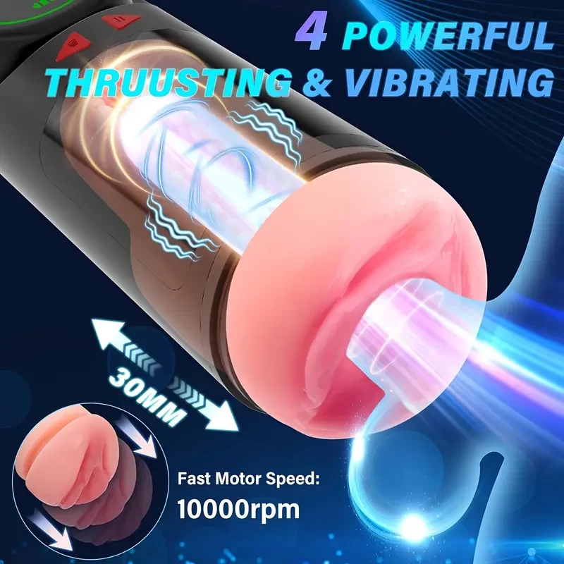 1 Male masturbator - Adult toy penis pump with 4 exciting modes: sucking, vibrating, pushing and LED display - perfect pocket-type stroker for pleasure