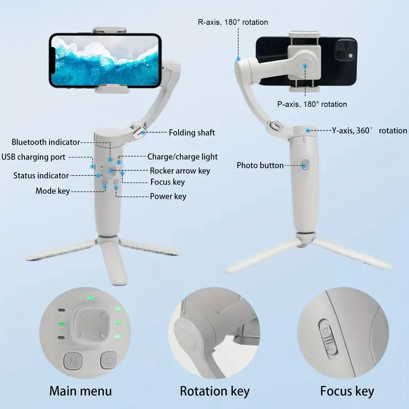 1 set, foldable 3 axis phone gimbal stabilizer, APP supported human face tracking function, multiple shooting options for iOS and Android phones
