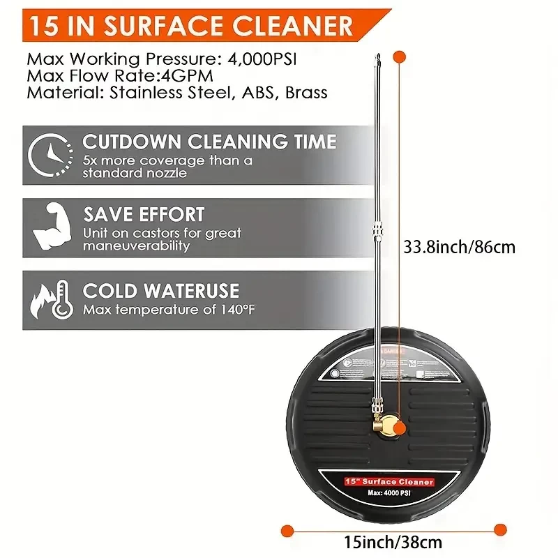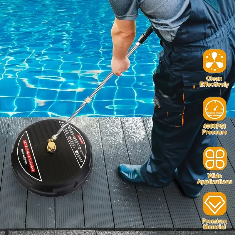 1 Set, High Pressure Cleaning Machine 15 Inch High Pressure Wash Floor Household Surface Cleaner With Two Extended Rods And Two Replacement Nozzles 4000psi