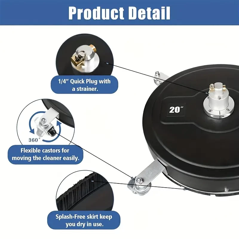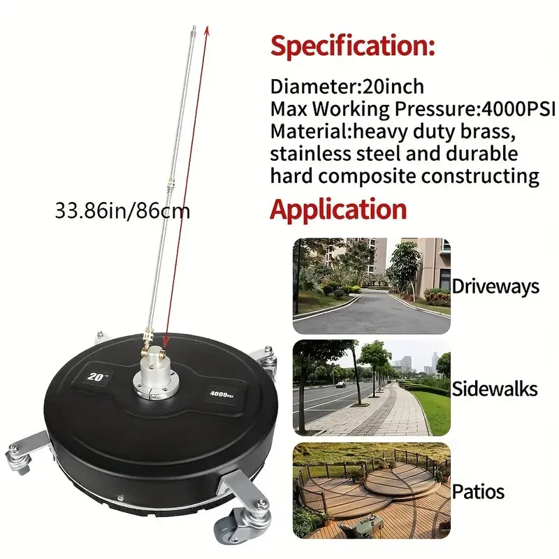 1 Set, High Pressure Cleaning Machine 20 Inch Plastic Washing Floor Plate 2 Extended Rods, 2 Replacement Nozzles 4000psi