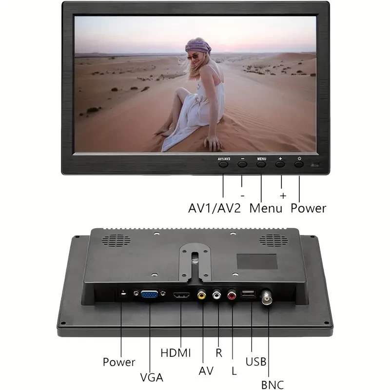 10.1 Inch Monitor 1024x600 Display HD TFT LED Screen Support AV VGA BNC USB Video Input For CCTV DVD PC DVR With Speaker