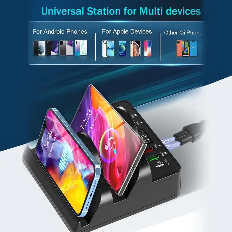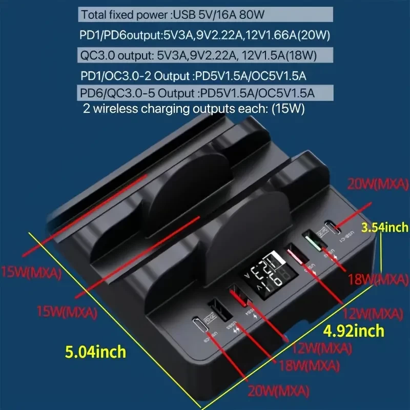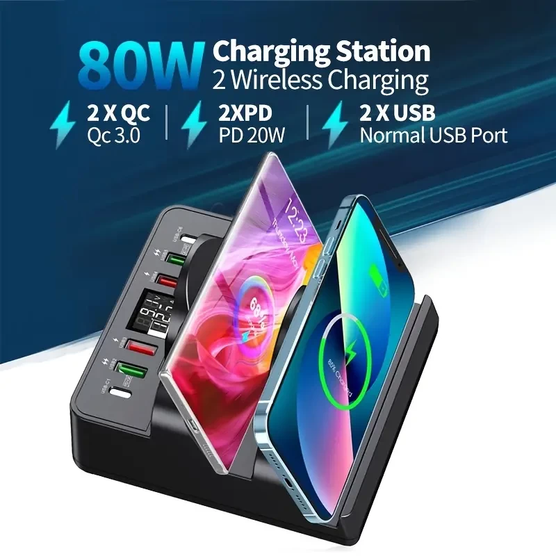 100W 8-port USB Fast Charging PD 20 W QC 3.0,15 W Fast Wireless Charging,Fast Charging Station Compatible With All Smartphones For Apple IPhone IPad, Camera ,headsets/Samsung/Android/Other USB Devices