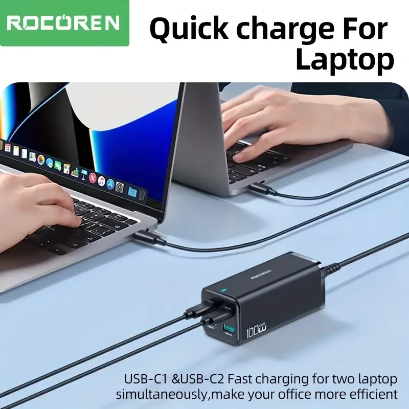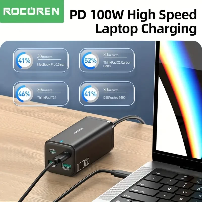100W GaN Desktop Charger with Quick Charge 4.0, 5.0 & 3.0 PD USB-C Type C for MacBook Pro, iPhone & Samsung Laptops