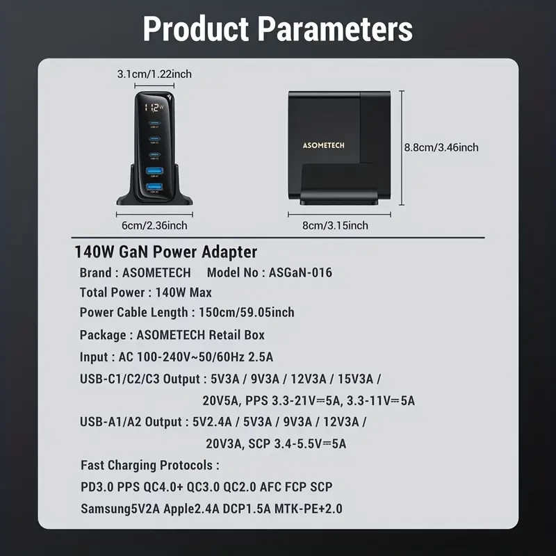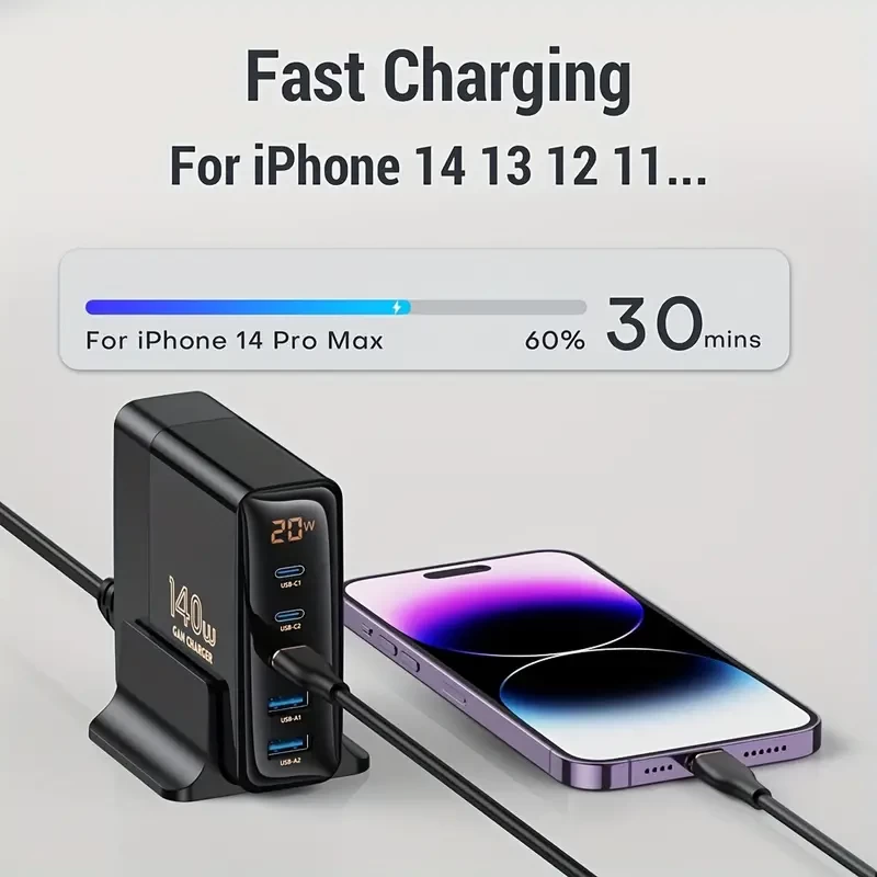 140W GaN Multi USB Charger PD3.0 Type C Fast Charging Station - LED Display, 100W PD USB C Charger for Laptop, iPhone 14/13, Samsung, Xiaomi