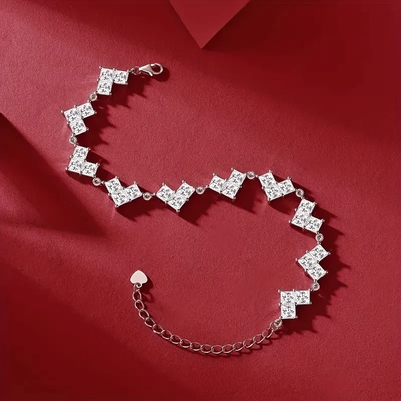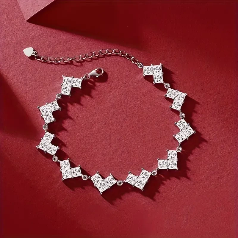 1ct * 30 Square Moissanite Bracelet 1pc, 925 Sterling Silver Women's Tennis Bracelet Hip-hop Personality Luxury Tennis Bracelet Valentine's Day Wedding Anniversary Gift, With Certificate