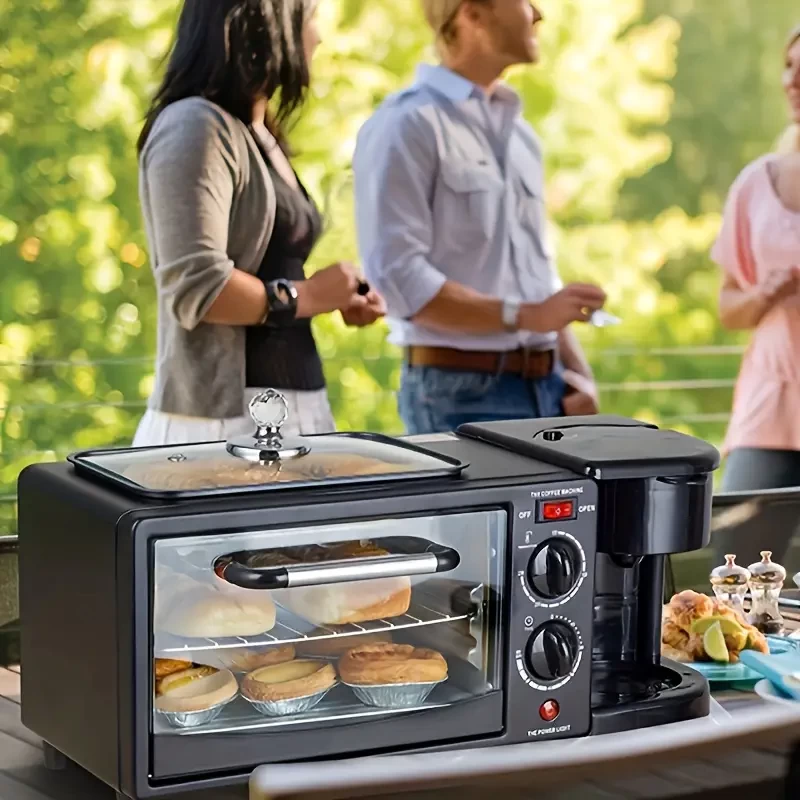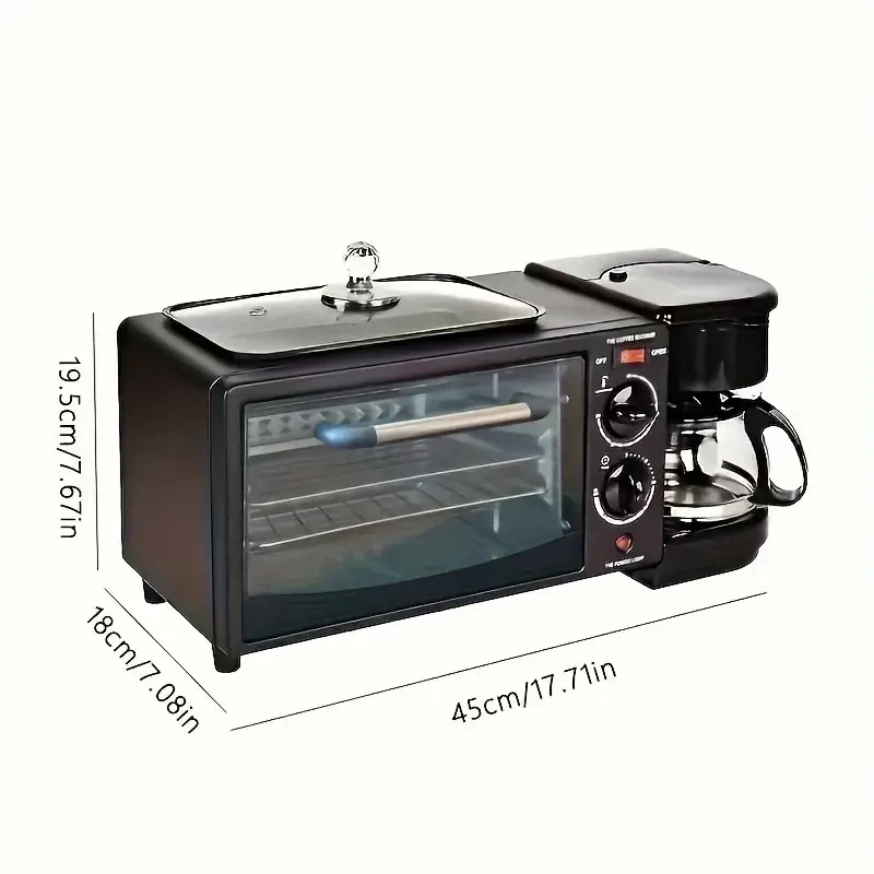 1pc 3-in-1 Breakfast Maker, Mini Electric Oven Toaster, 20.29 Oz Drip Coffee Maker, Non-stick Skillet, Sear Steaks, Mechanical Temperature Control And Timing Function, Kitchen Stuff Kitchen Accessorie