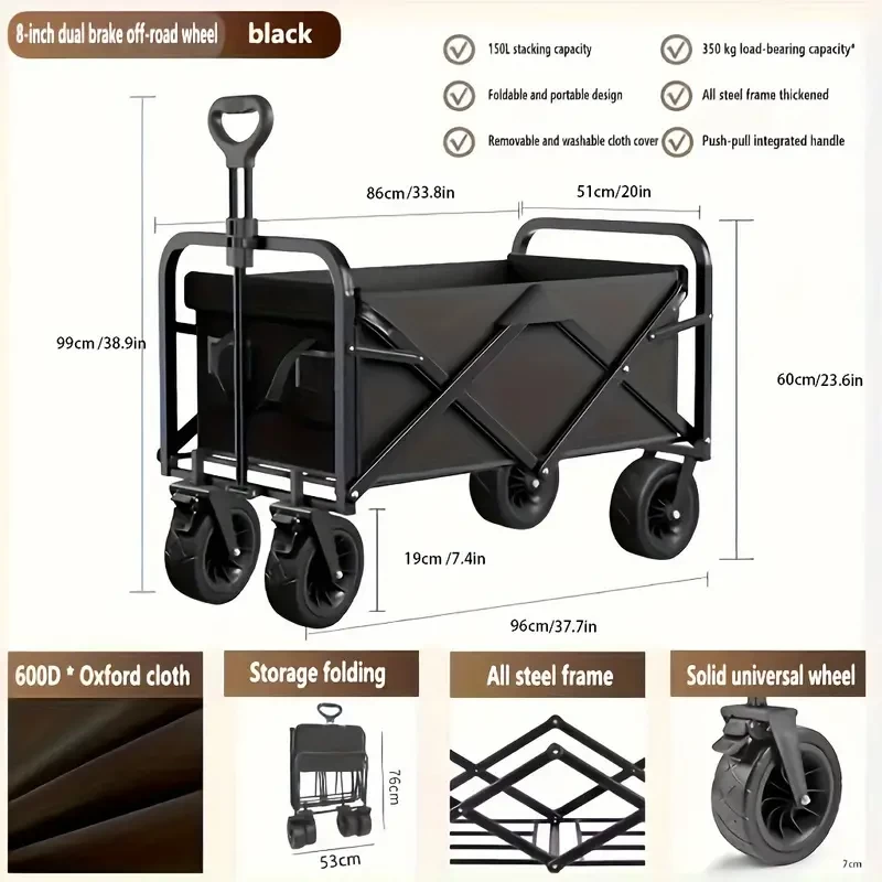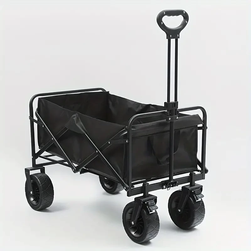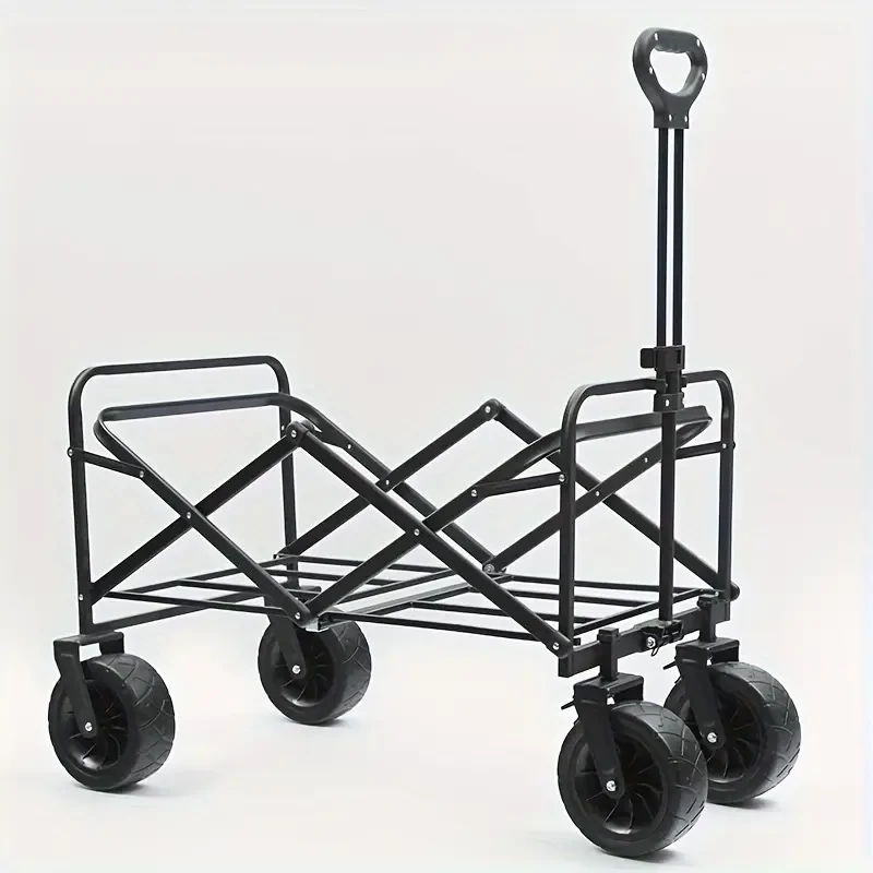 1pc Foldable Storage Cart, Double Decker Cart, Beach Wagon Cart, Camping Folding Storage Cart With Wheels, Heavy Duty Wagon Cart, For Outdoor Camping Shopping Storage