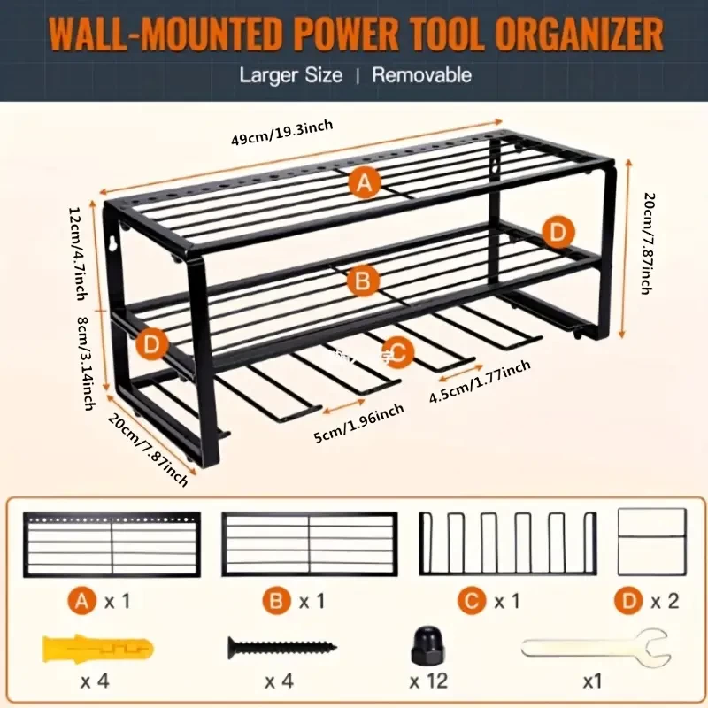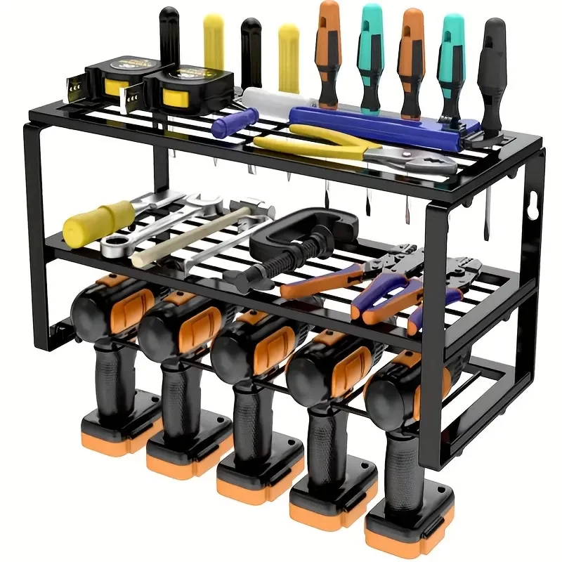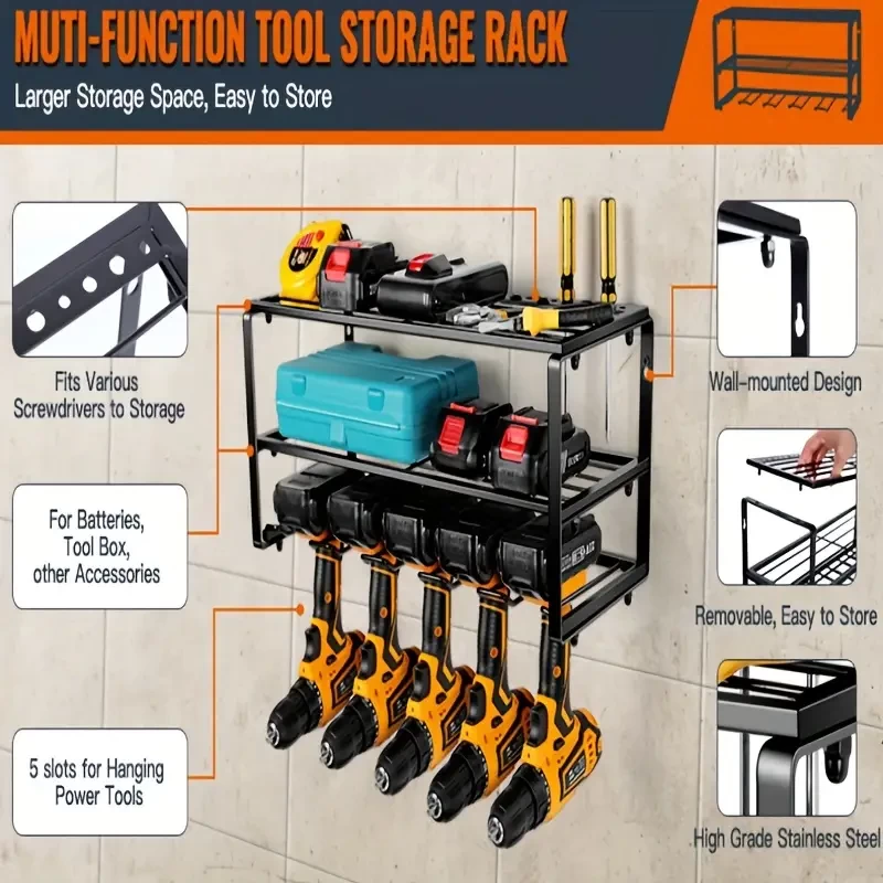 1pc Large Power Tool Organizer Storage 5 Drill Holder, Garage Tool Organizers And Storage Rack, Duty Floating Tool Shelf, Wall Mounted Tool Storage With Screwdriver Holder, Gift For Father's Day