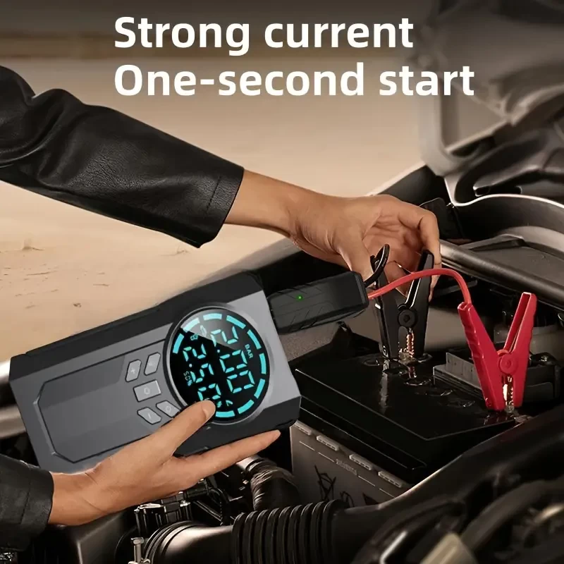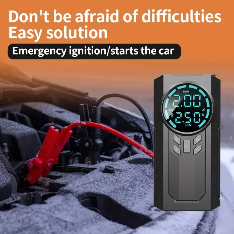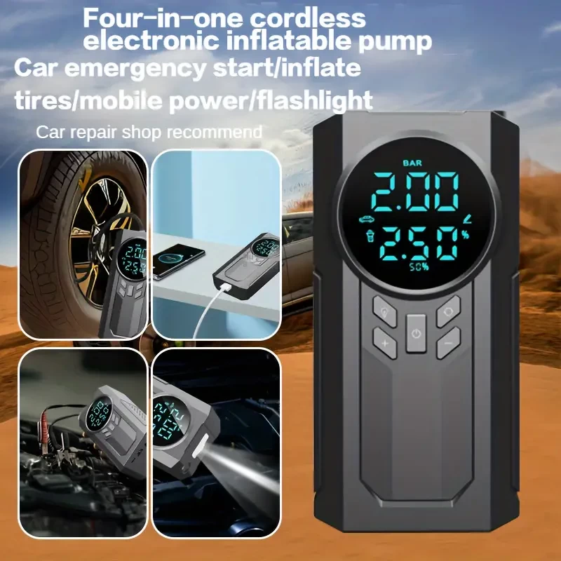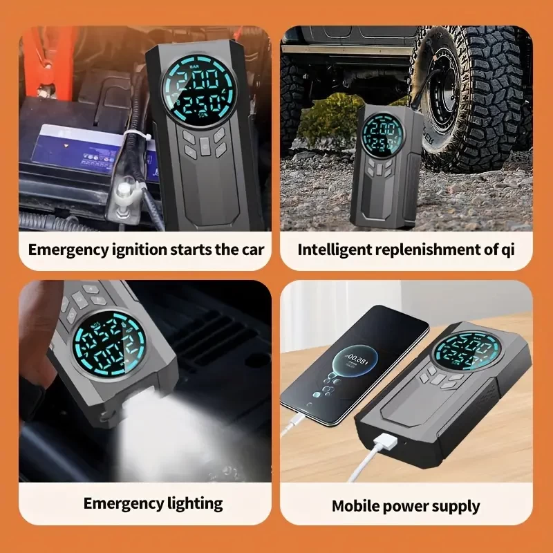 1pc Portable Cordless Car Battery Emergency Starter, Tire Air Pump, Air Compressor, Easy Inflation Tire, LED Display, Flashlight, Mobile Power Supply