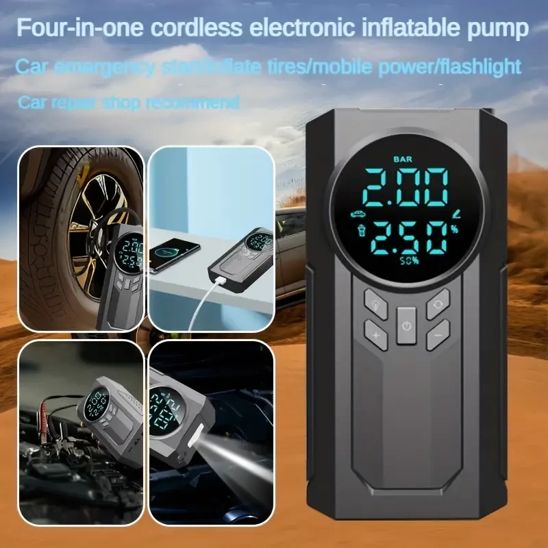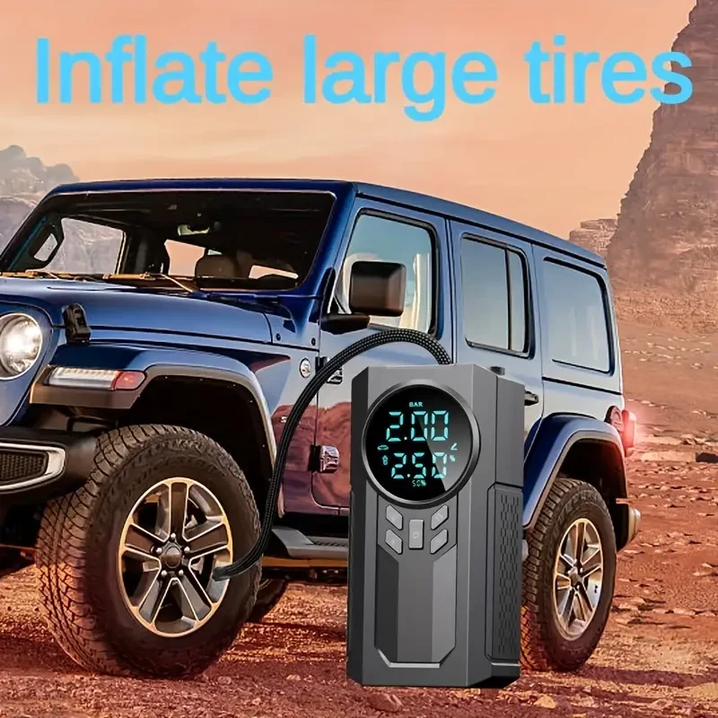 1pc Portable Cordless Car Battery Emergency Starter, Tire Air Pump, Air Compressor To Easily Inflate Tires, LED Display, With Flashlight, Mobile Power Supply, Large Capacity Storage