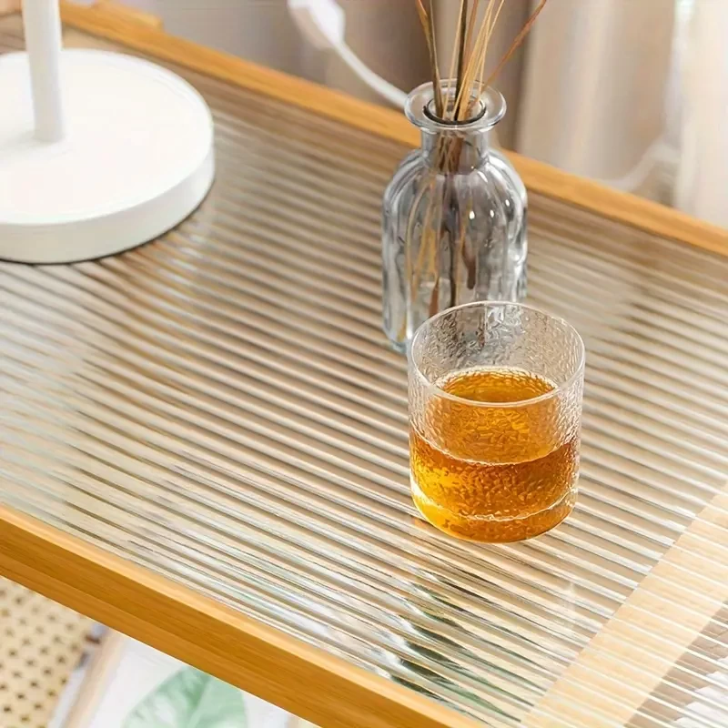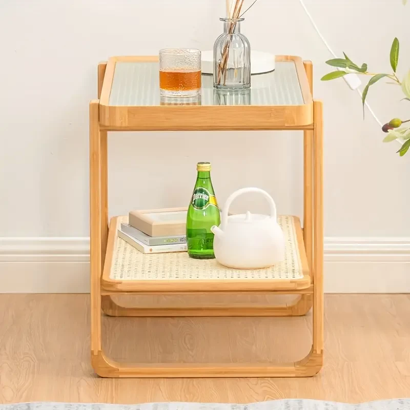1pc Sea Shipping. Sofa Side Table, Minimalist Living Room Mini Balcony Small Coffee Table, Log Color Glass Bedside Table Rattan Braided Corner Table