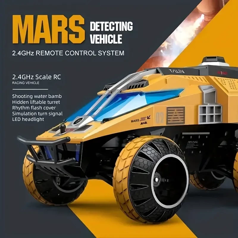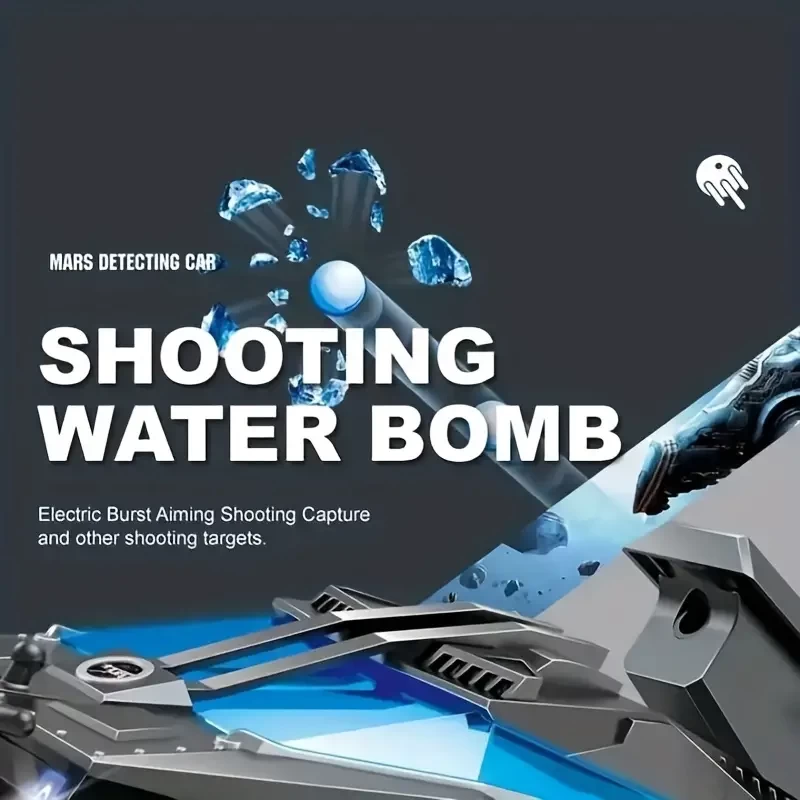 2.4G Fully Proportional RC Six Wheel Drive, Mars Exploration Toy Car, Can Launch Water Bombs For Remote Shooting, Hidden And Adjustable Turret For Cool Car Lights Exploration, Space Gift Toys